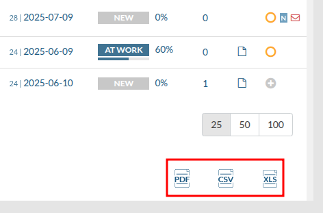 Do modułów zadań, ofert oraz zamówień dodano dedykowane narzędzia eksportu danych. Funkcja ta jest dostępna za pomocą przycisków umieszczonych bezpośrednio pod listą, co zapewnia do nich szybki dostęp podczas przeglądania rekordów.