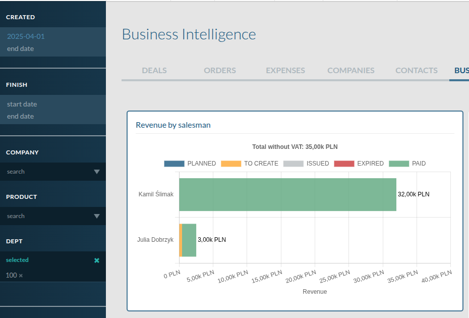 Nowe parametry filtrowania w widżecie "Revenue by salesman"